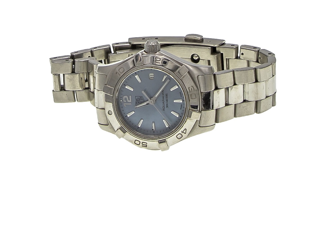 Tag Heuer Lady’s Aquaracer with a blue Mother of Pearl face